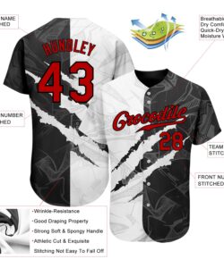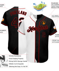 Custom White-Black Red Authentic Split Fashion Baseball Jersey