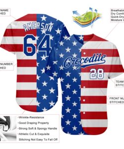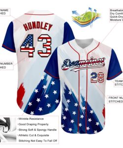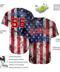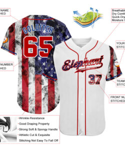 Custom White USA Flag Royal Red-Black 3D American Flag Fashion Authentic Baseball Jersey