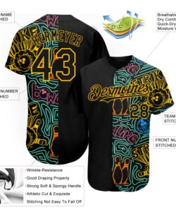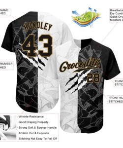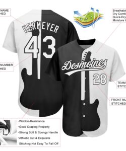 Custom Black White 3D Pattern Design Music Festival Guitar Rock And Roll Authentic Baseball Jersey