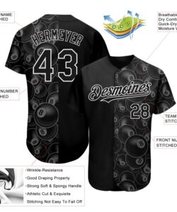 Custom Black White 3D Pattern Design Billiards Snooker 8 Ball Authentic Baseball Jersey