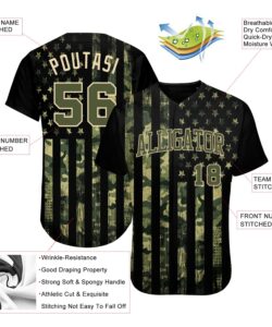 Custom Camo Olive-Cream 3D American Flag Authentic Salute To Service Baseball Jersey