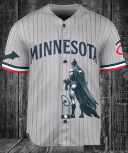 Minnesota Twins x DC Comics Batman The Dark Knight with Trophy Custom Baseball Jersey Gray Road