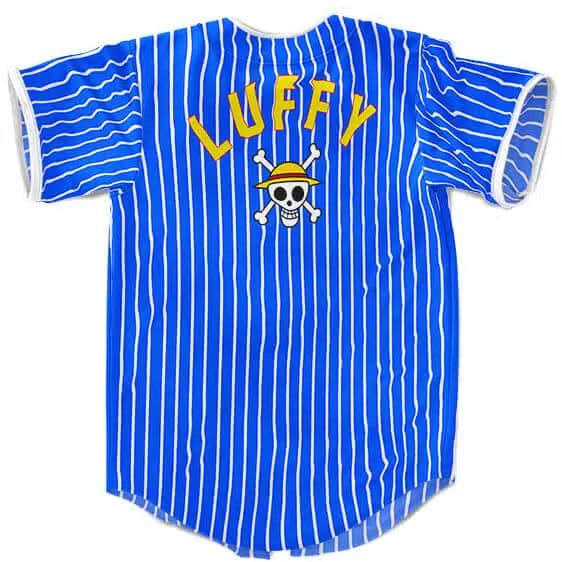 Luffy Straw Hat Blue Striped Baseball Jersey