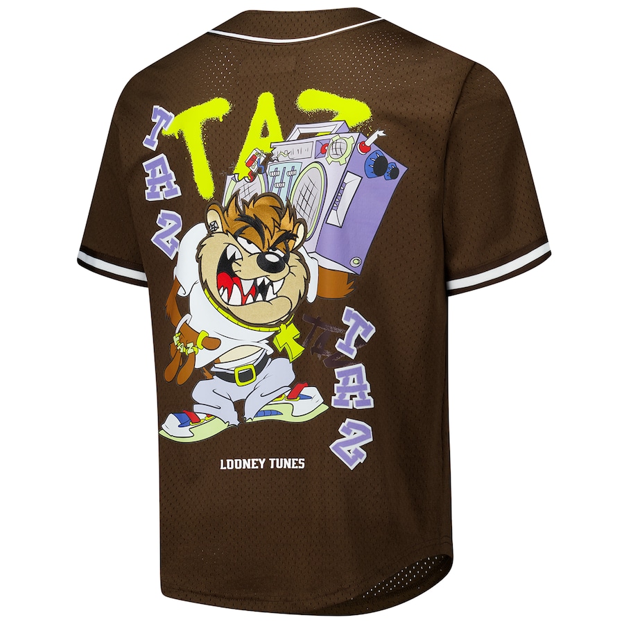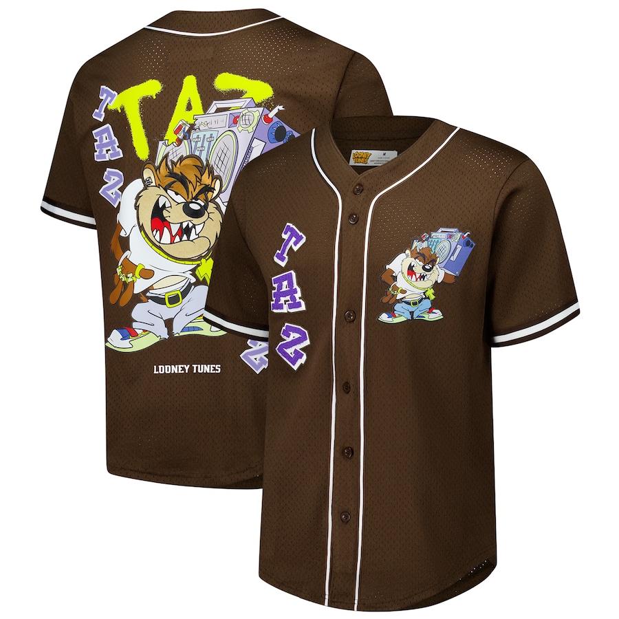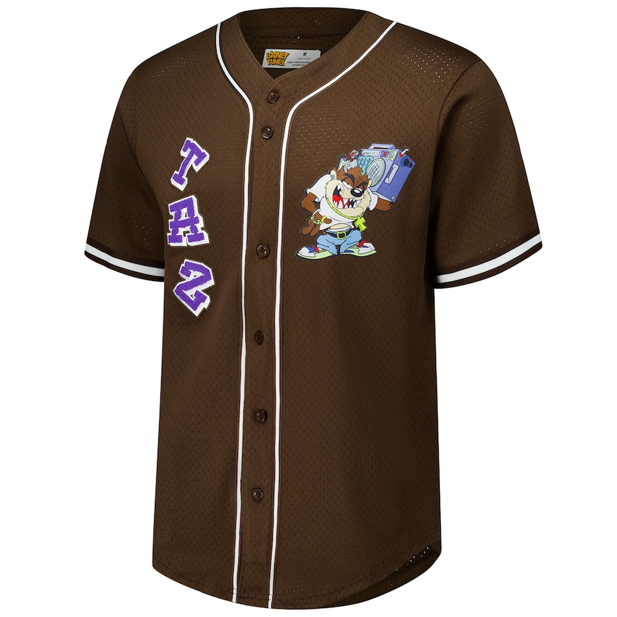 Men’s Freeze Max Brown Looney Tunes Hip Hop Taz Button-Up Baseball Jersey