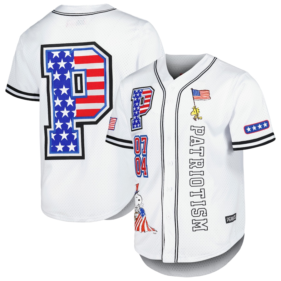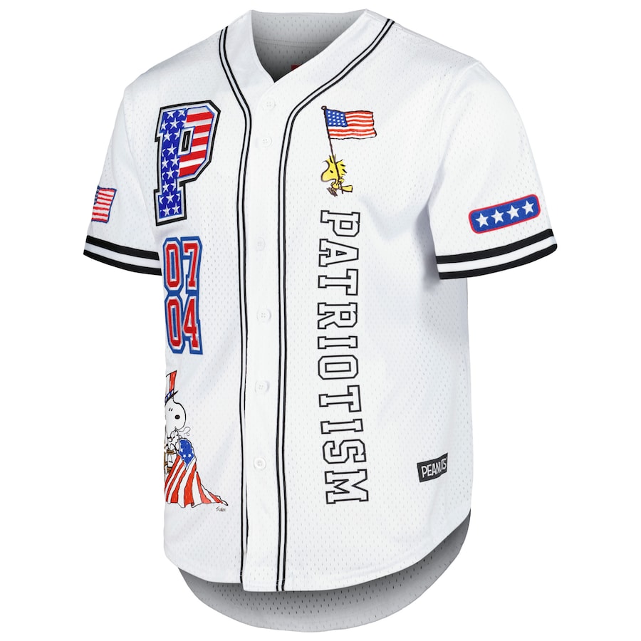 Men’s Freeze Max White Peanuts Patriotism Baseball Jersey