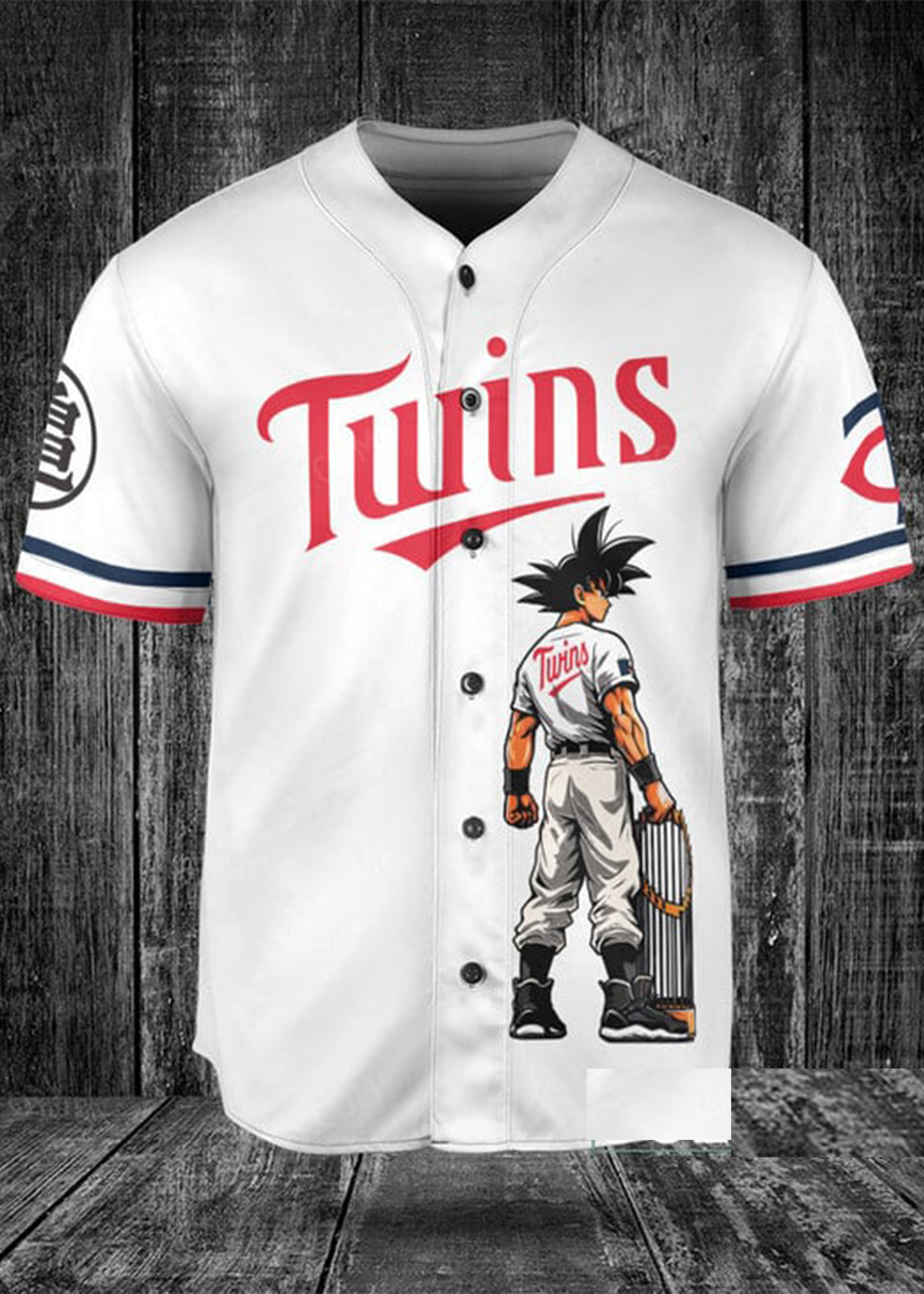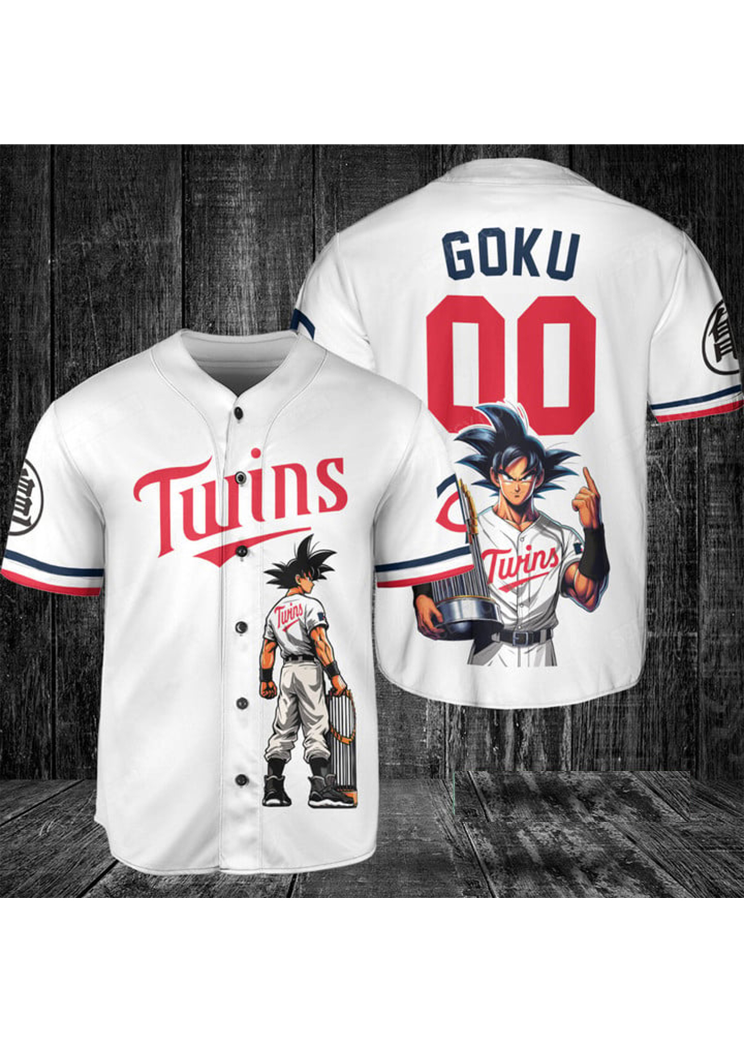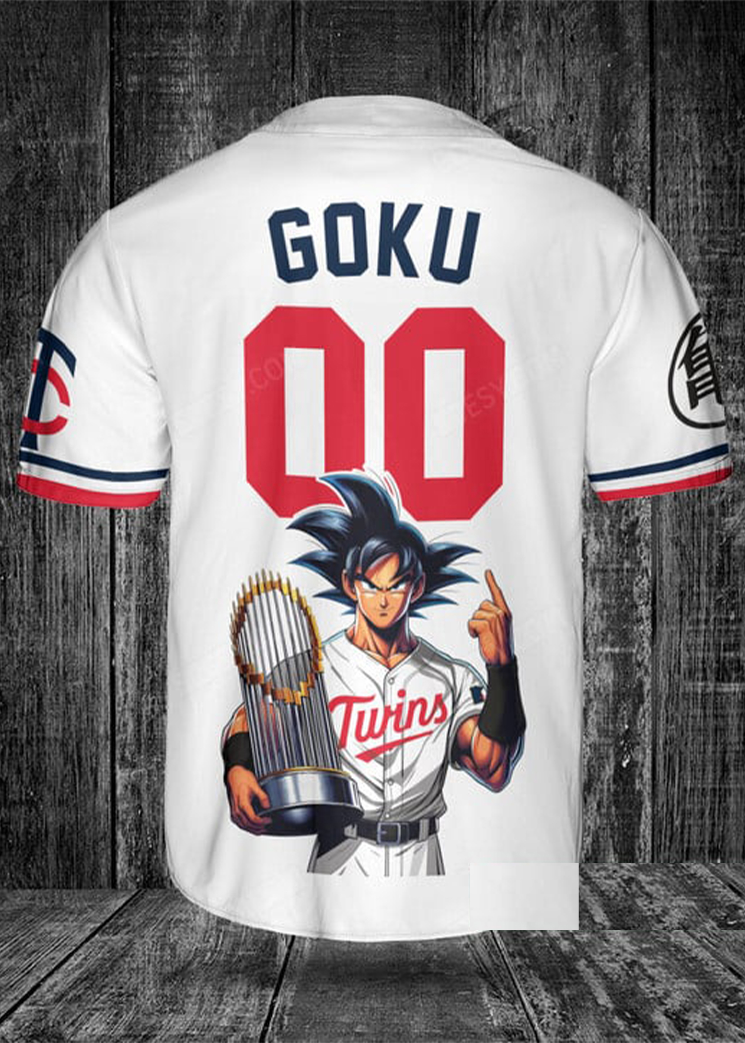 Minnesota Twins Dragon Ball Son Goku Baseball Jersey White