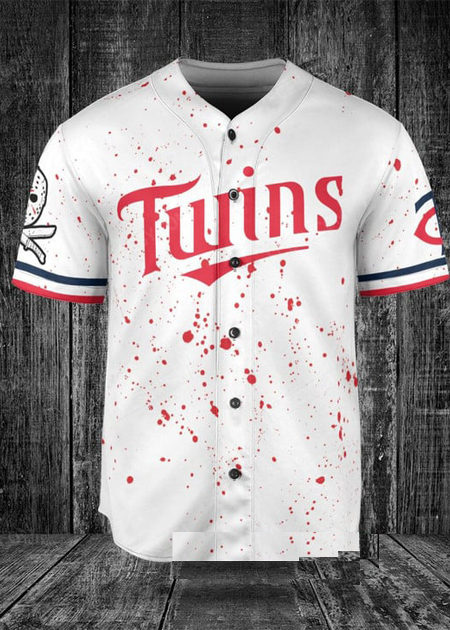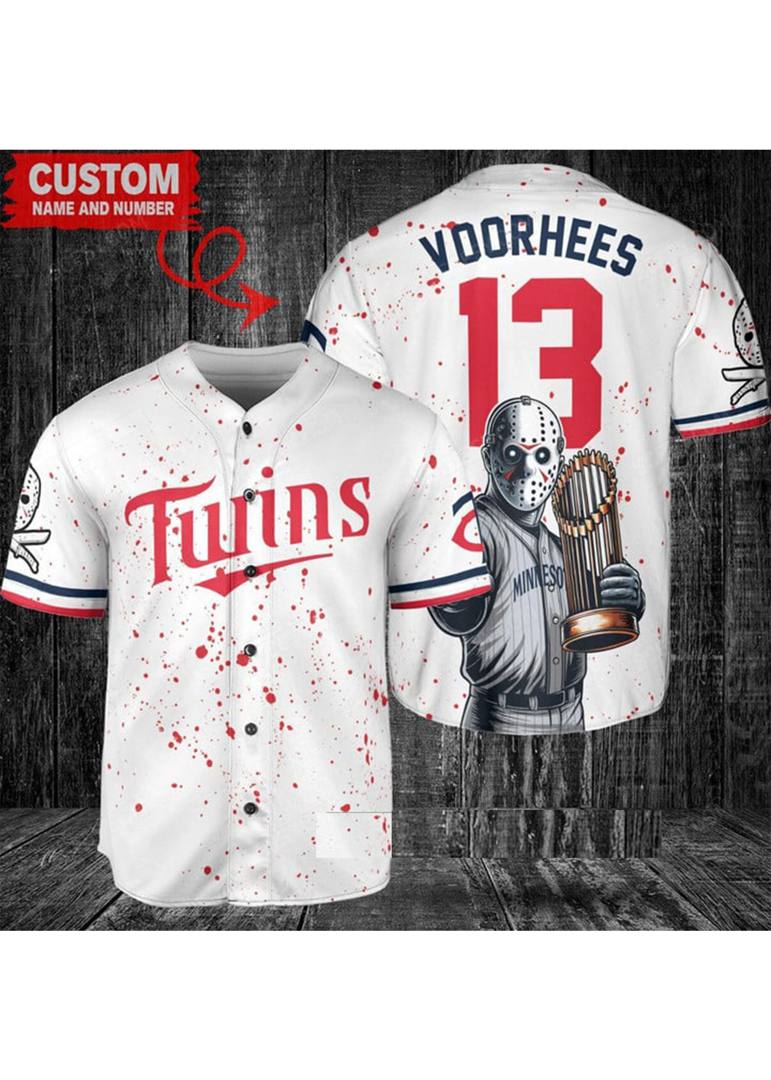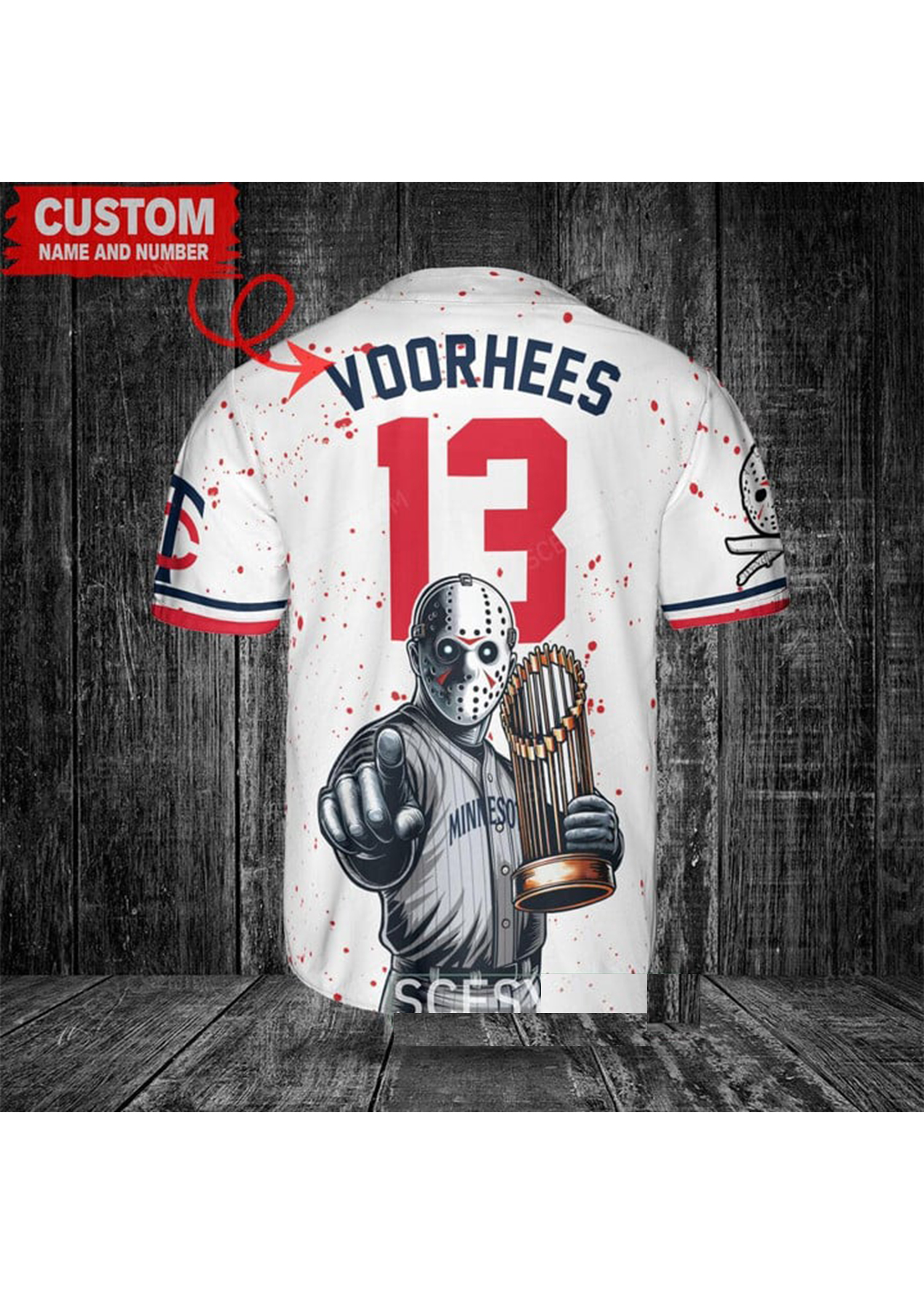 Minnesota Twins x Friday the 13th Jason Voorhees Halloween with World Series Trophy Custom Baseball Jersey White