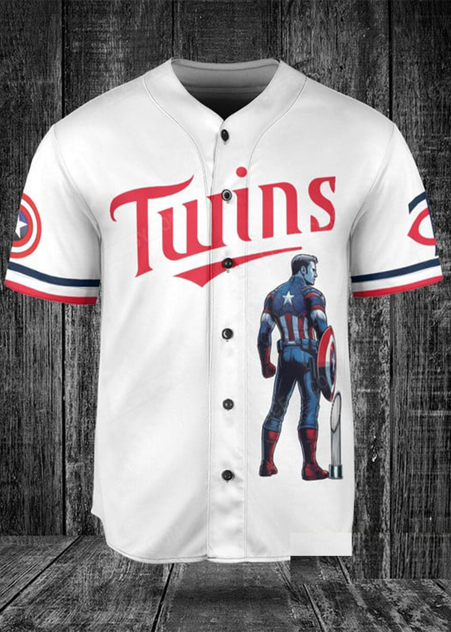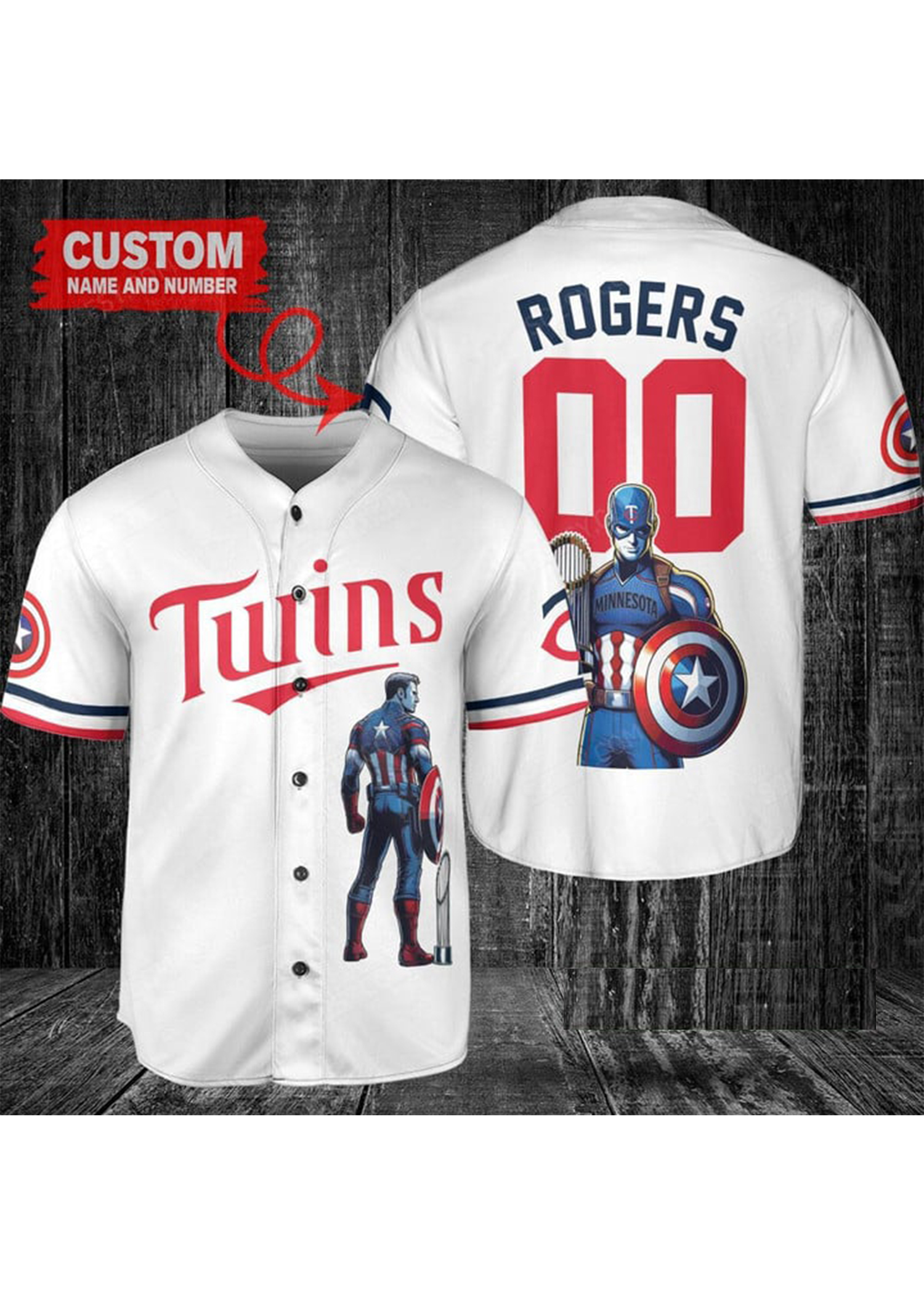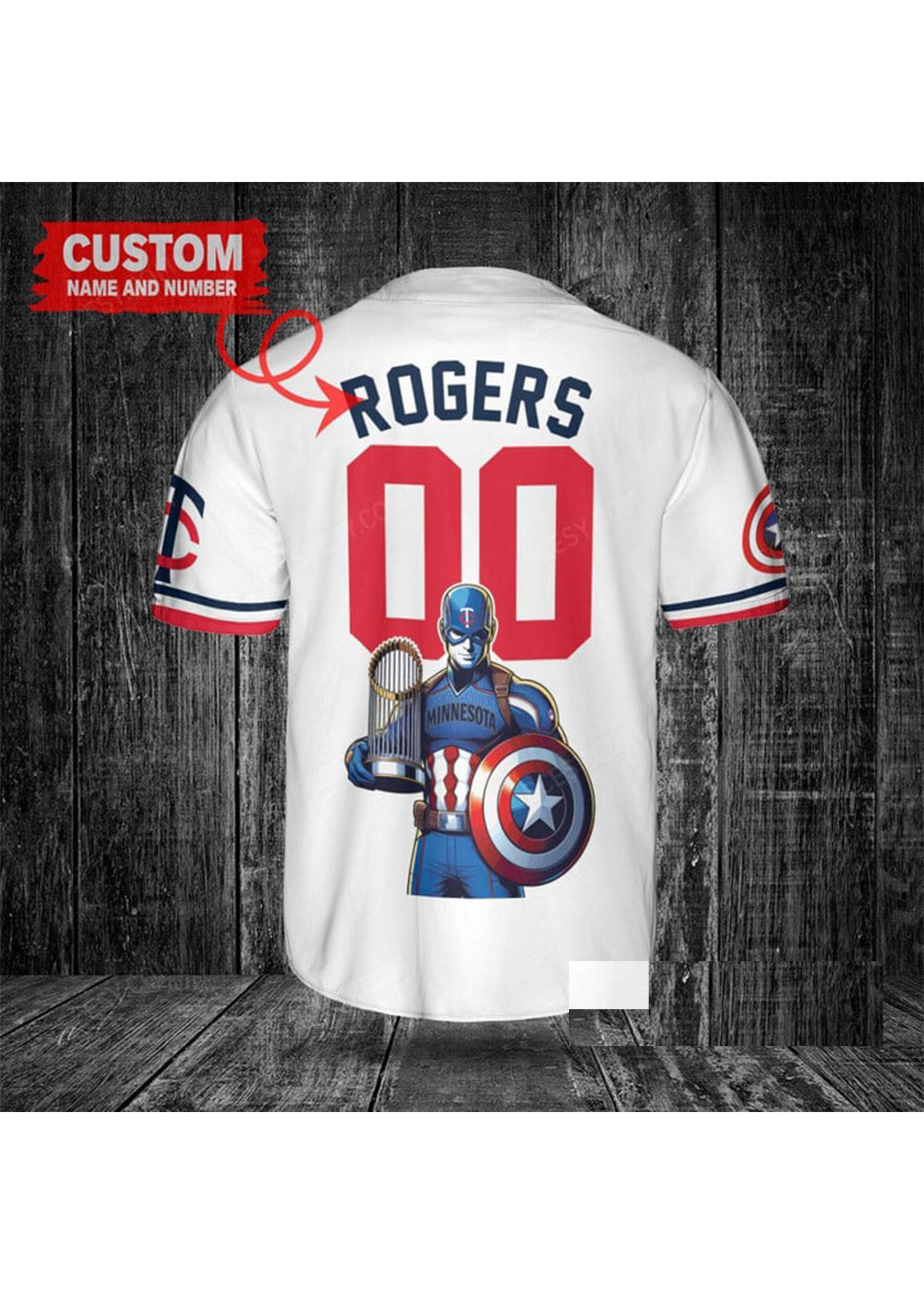 Minnesota Twins x Marvel Captain America Steve Rogers with Trophy Custom Baseball Jersey White