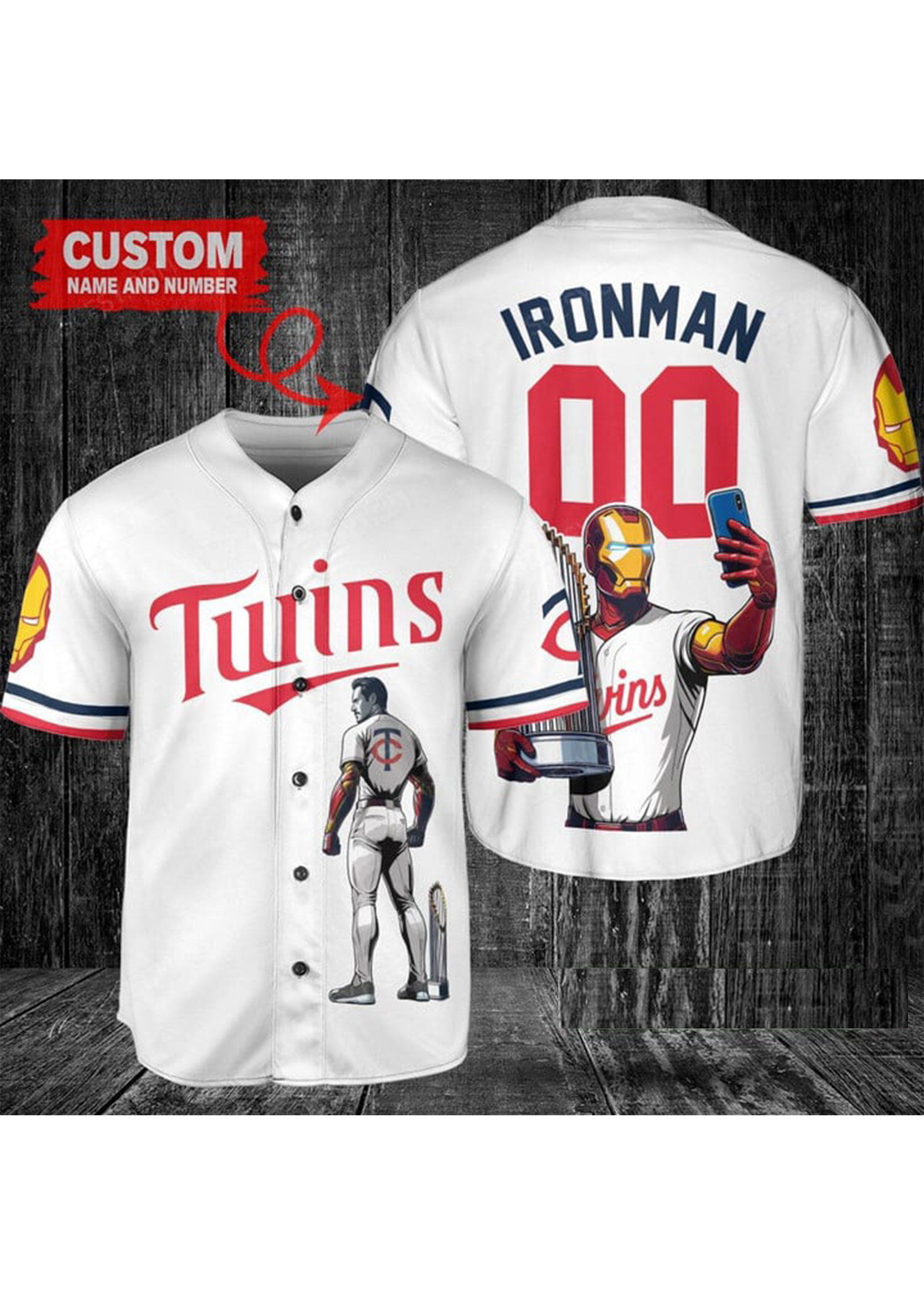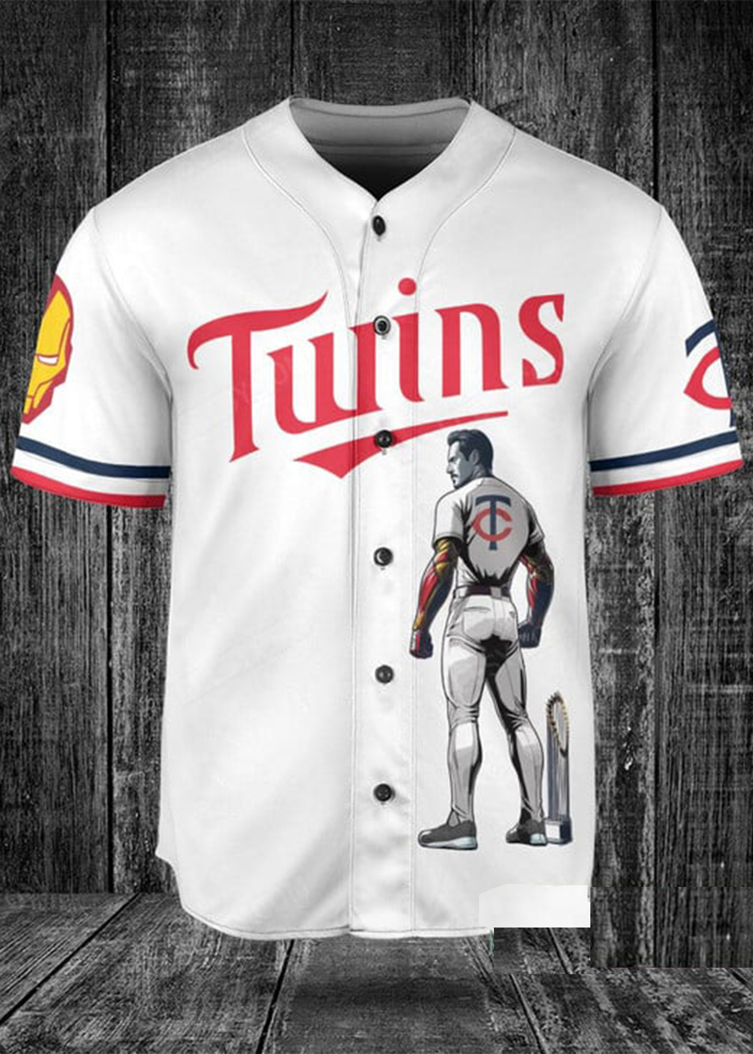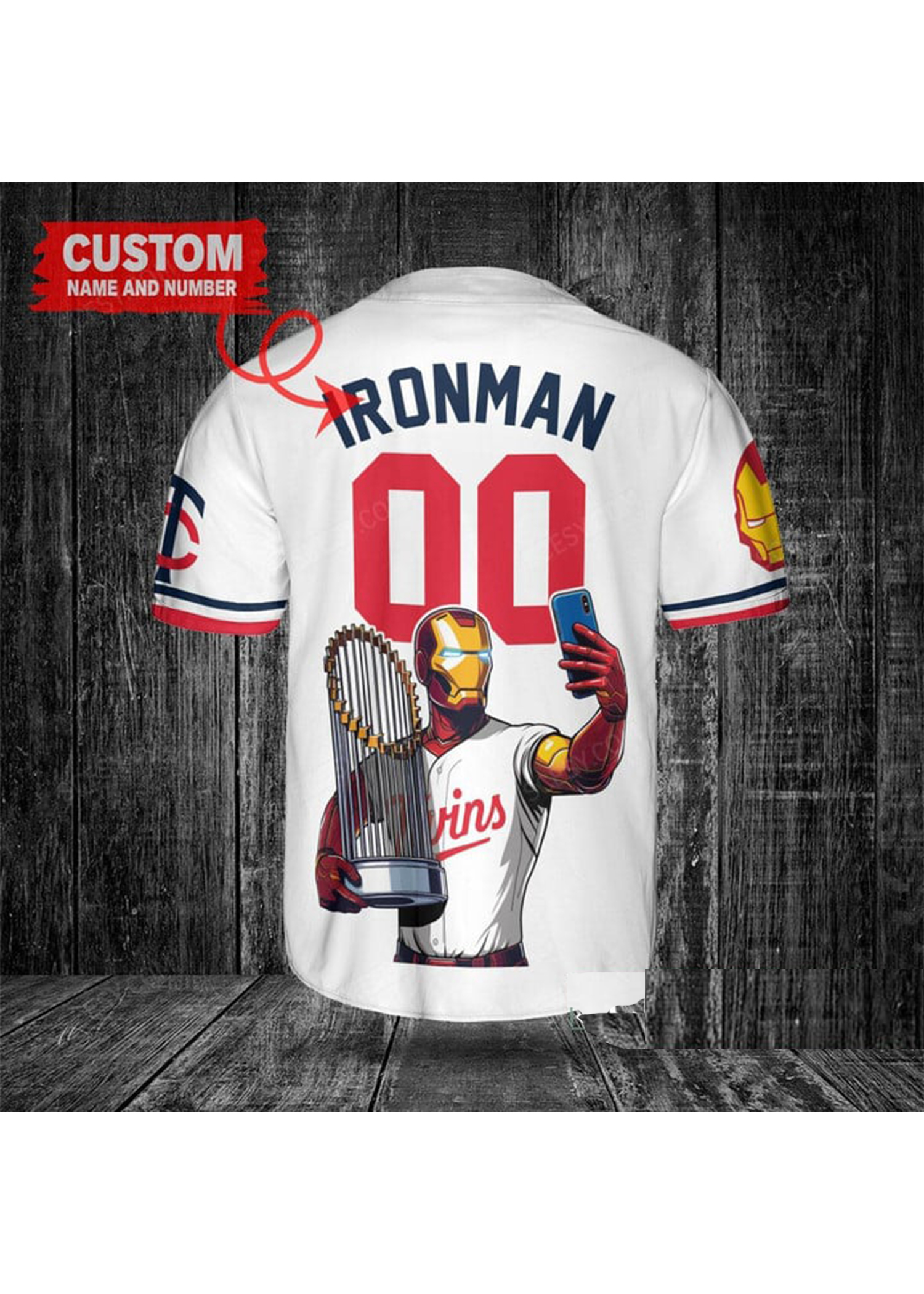 Minnesota Twins x Marvel Iron Man Tony Stark with Trophy Custom Baseball Jersey White