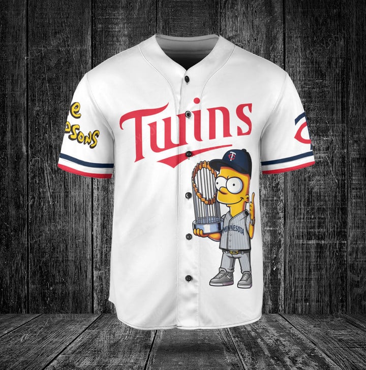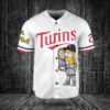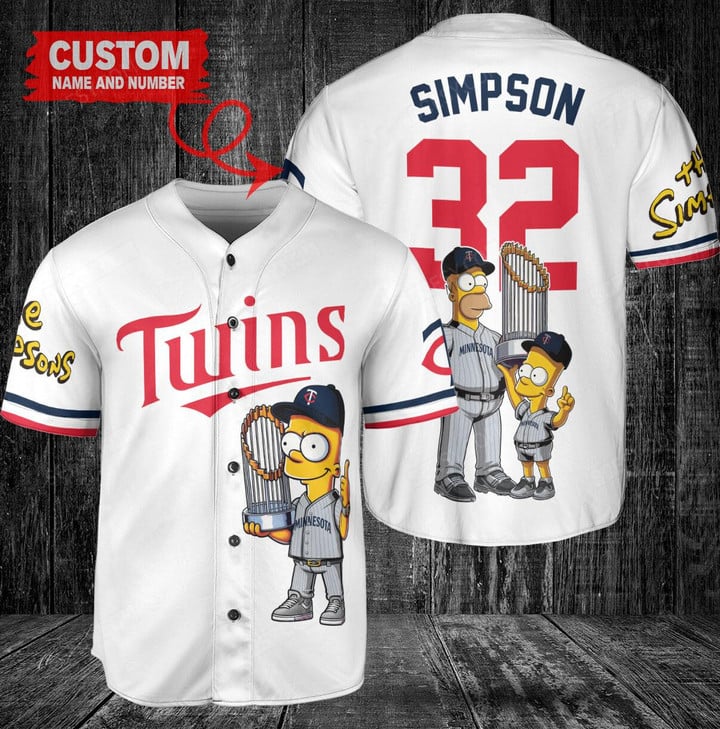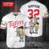 Minnesota Twins x The Simpsons Bart Simpson, Homer Simpson, Lisa Simpson with Trophy Custom Baseball Jersey White